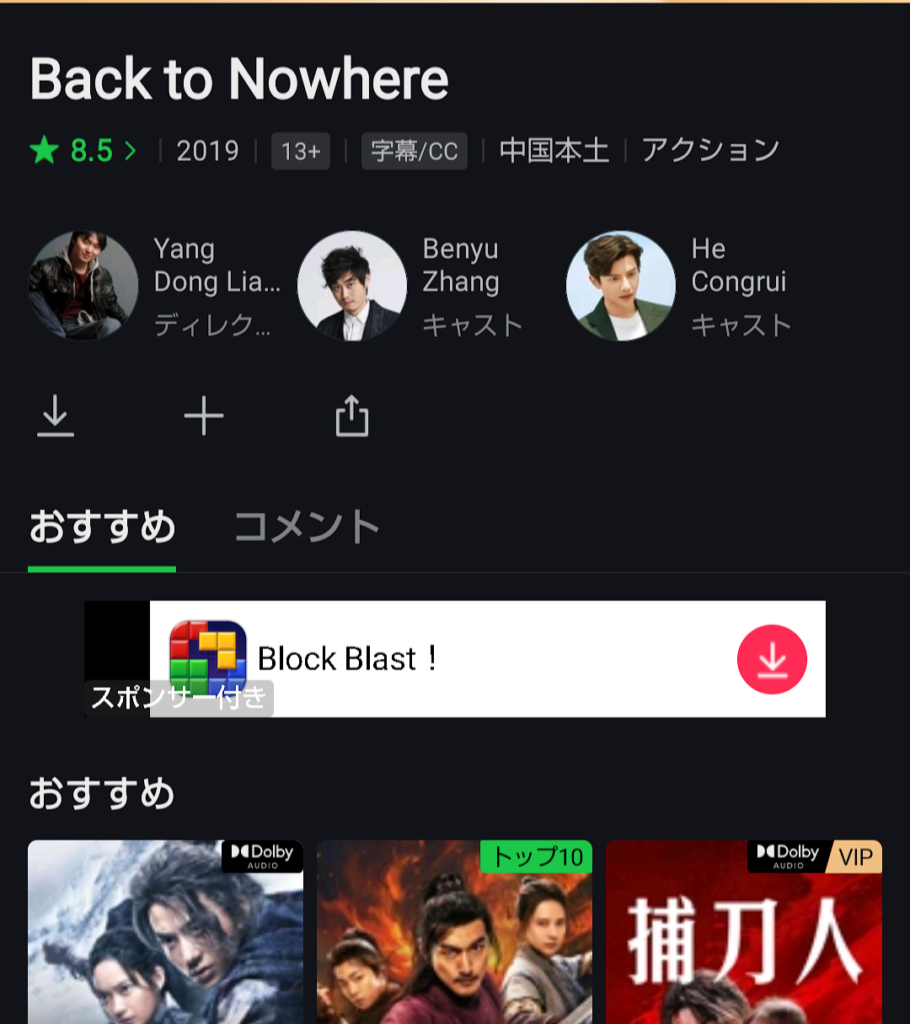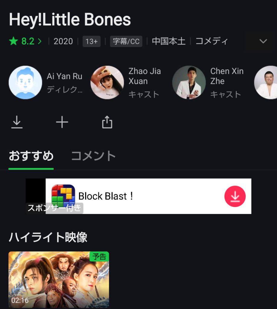 「iQIYI」は、「みっともない」というドラマが観たくてダウンロードをしたのですが、ホーツォンルイさんの出演する映画も観ることができました!