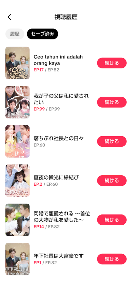 外国語の題名のドラマと、⑤番の「年下社長は大富豪です」はサムネイルが一緒だから同じ話っぽいですね。