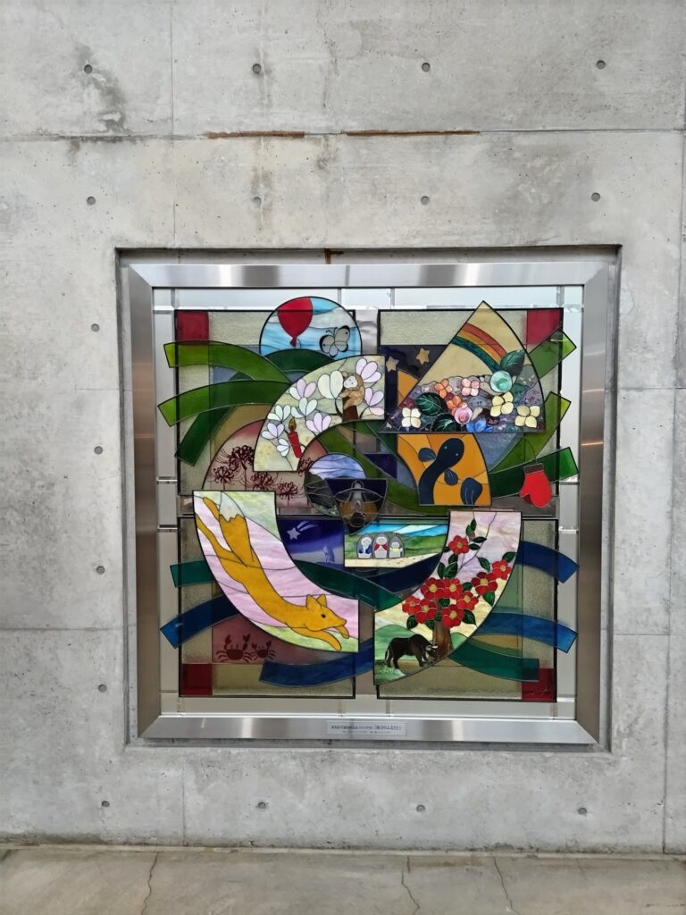 入ってすぐのところに、新美南吉さんのお話の世界観溢れるステンドグラスがありました。