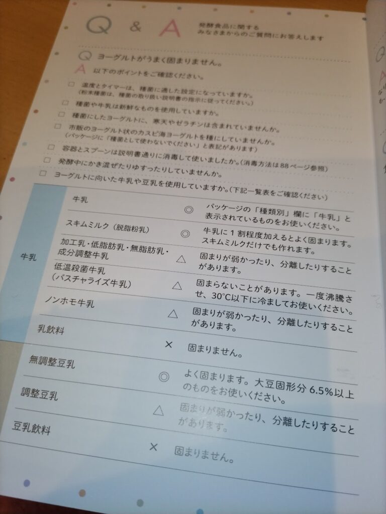 他にも、ヨーグルトの作り方とか、他の説明書だとちょっと適当な書き方だけど、こちらの説明書は細かく丁寧に書いてくださっていました。